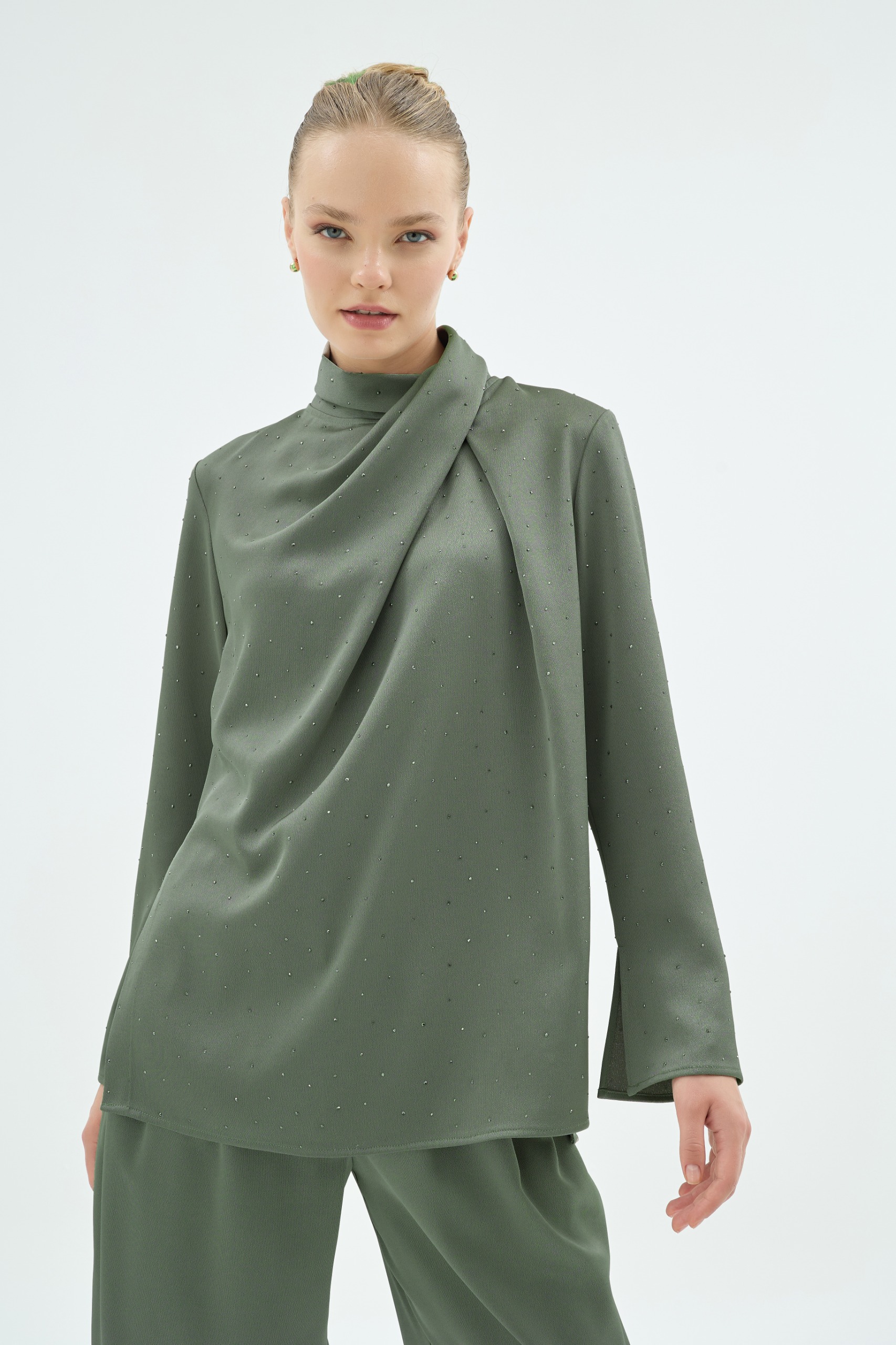 CRISTALLE TAŞLI BLUZ HAKİ