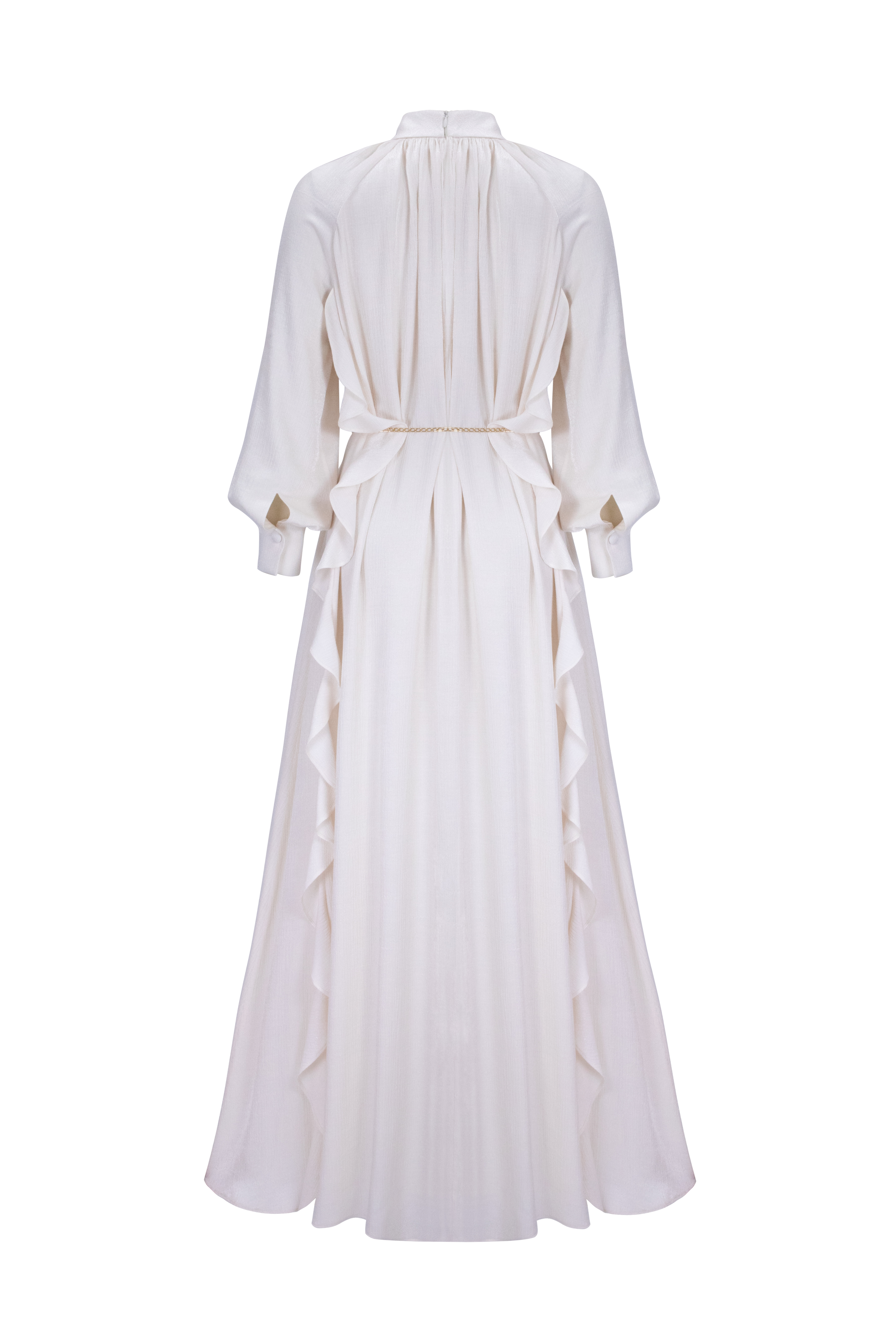 Yumuşak tuşesinin rahatlığı, inci ve taşlı kemeriyle çok şık bir elbise