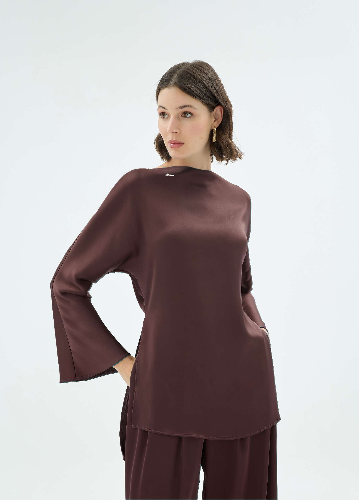 CRISTALLE TAŞLI BLUZ CAMEL