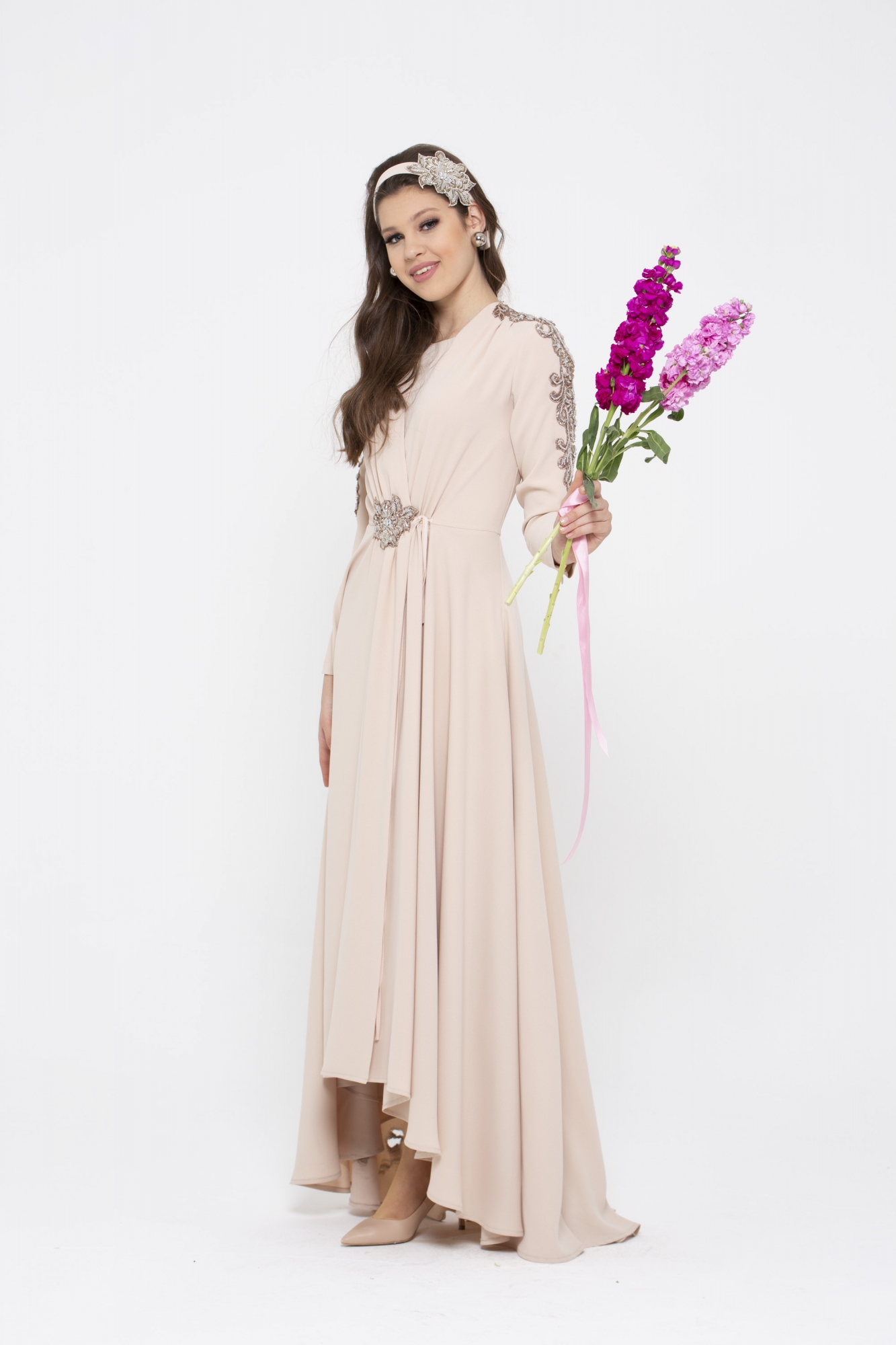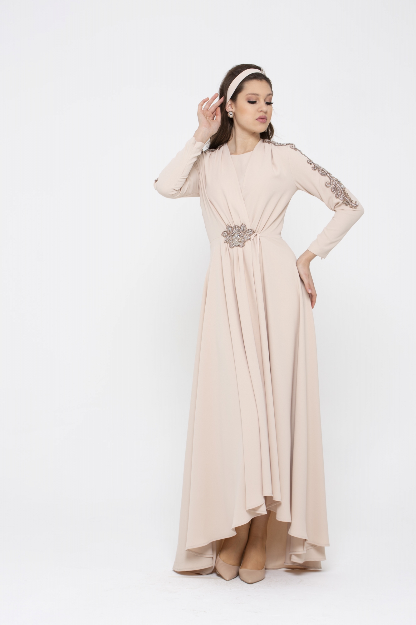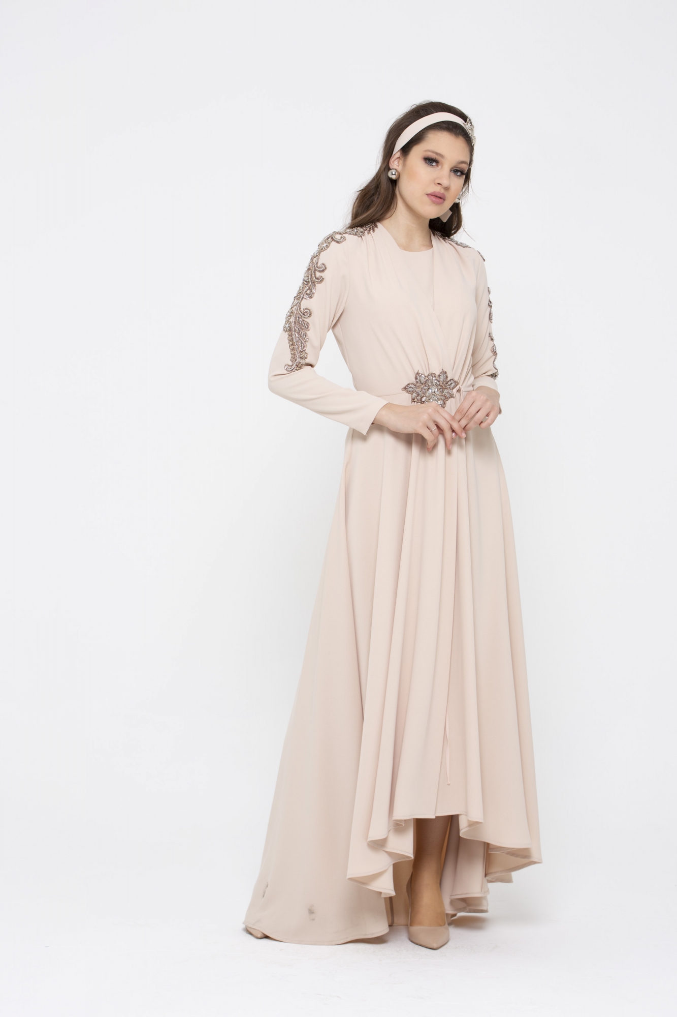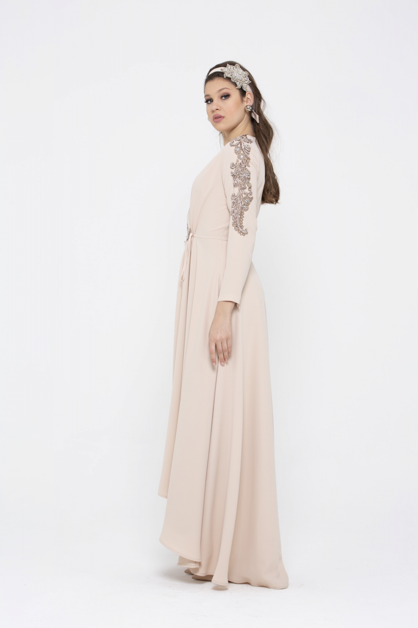 Kol ve bel kısmındaki harike el işleme detaylarıyla Marueriete Elbisenin büyüsüne kapılacaksınız.