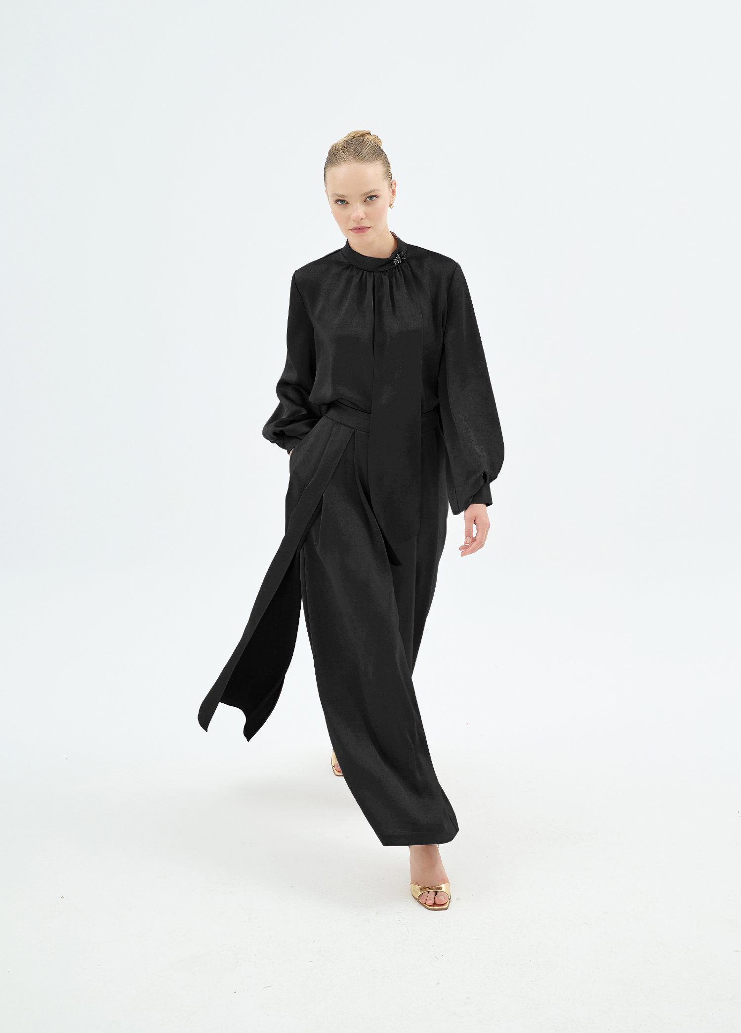 CRISTALLE TAŞLI BLUZ SİYAH