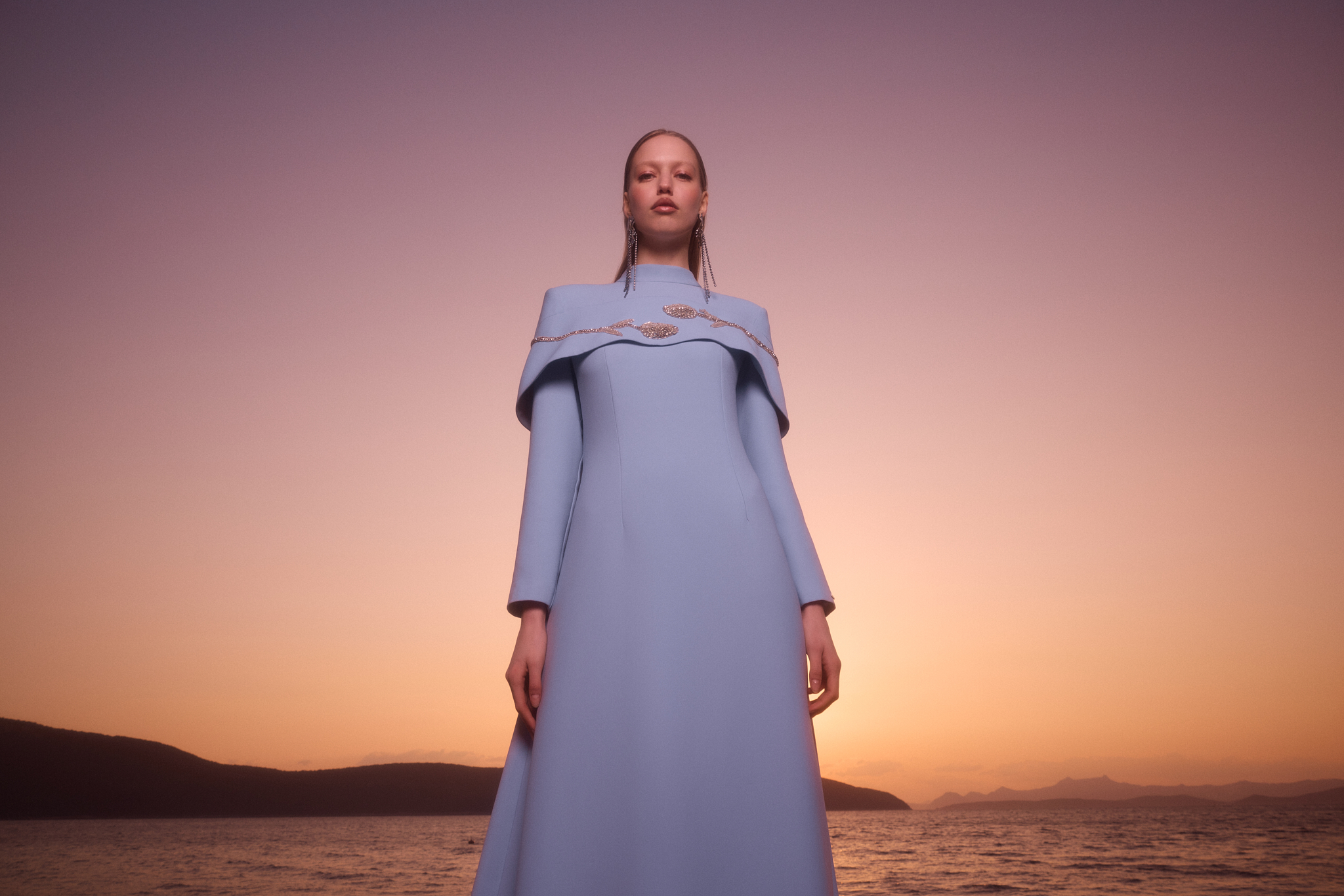 Özel lale kasnak işçiliğiyle zarif bir şekilde bezenmiş bu elbise, geleneksel işçiliği modern bir dokunuşla harmanlayarak eşsiz bir şıklık sunuyor.